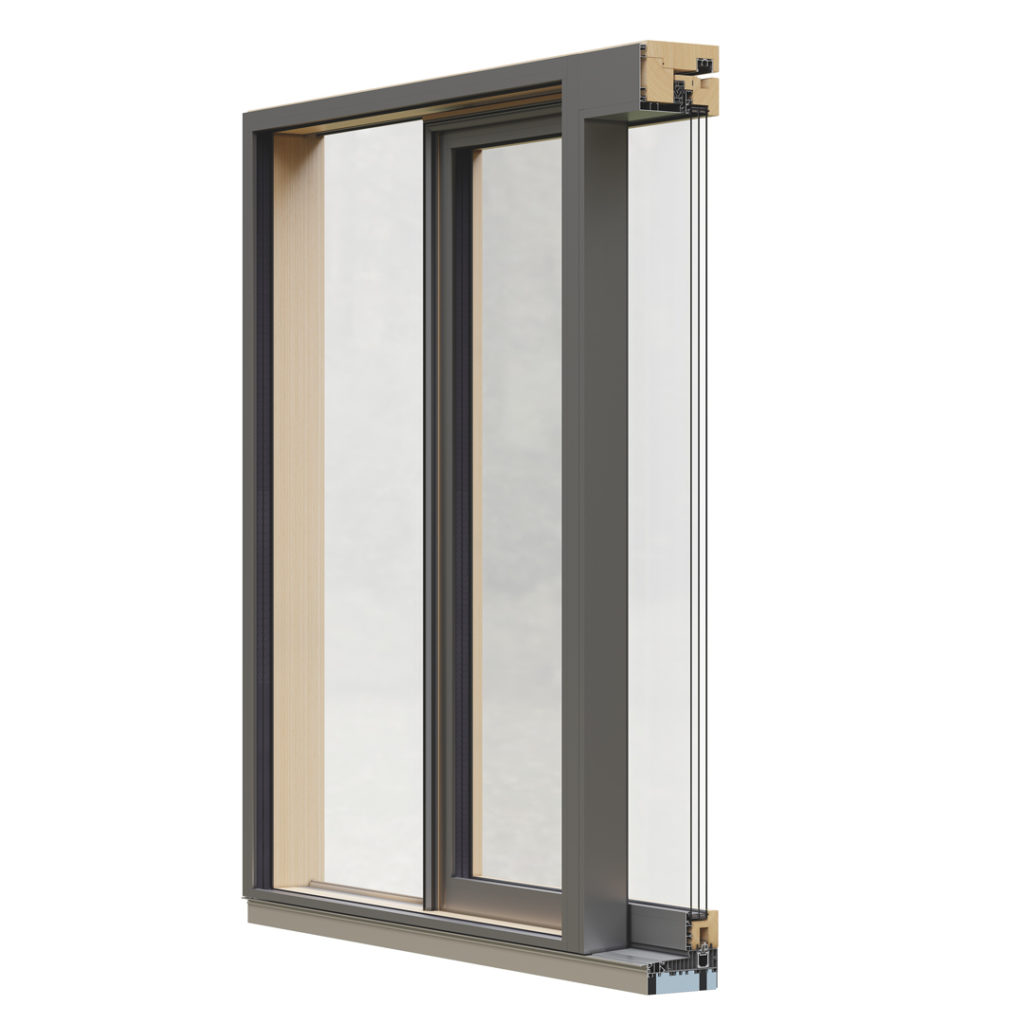 Plus de lumière avec notre nouveau système de coulissante à levage Bois-Métal PLUS qui comporte une très grande part de verre, avec une partie fixe vitrée directement dans le cadre. Une impression de légèreté sans égale.