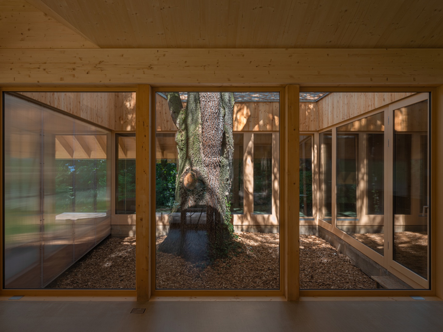 Un magnifique projet avec la construction neuve d’une maison en ossature bois sous un cèdre centenaire. Maison construite sur pilotis afin d’éviter d’endommager les racines de l’arbre.